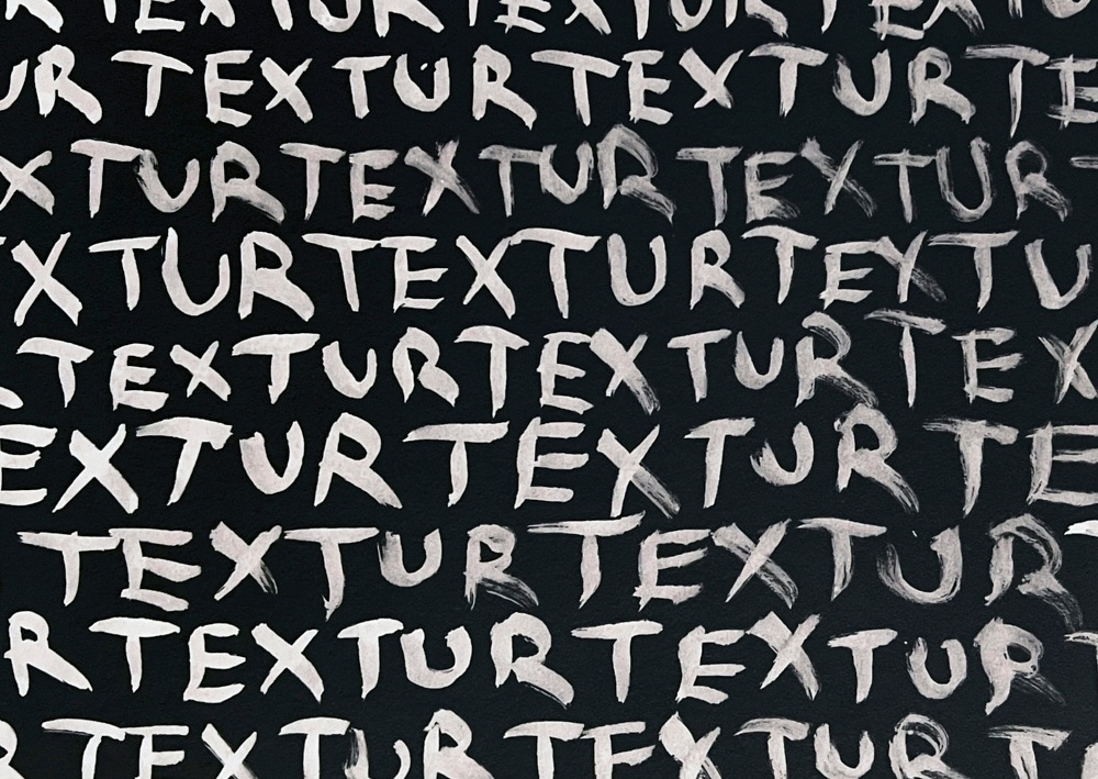 Zudem entstehen morphologische Wortspiele in Tusche auf Papier. Überlappende Wortbildungen und typografisch-formale Verdichtung eröffnen mehrere Bedeutungsebenen.